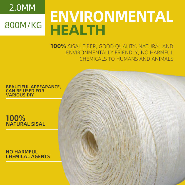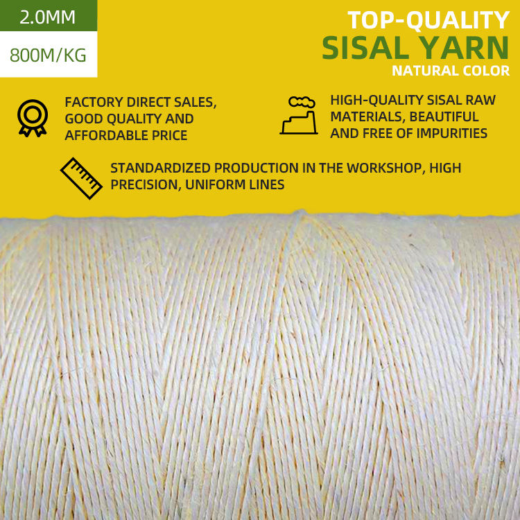 Factory Price 100% Nature 2mm Sisal Yarn 450m/kg-500m/kg Single-ply Sisal Thread Spun Yarn