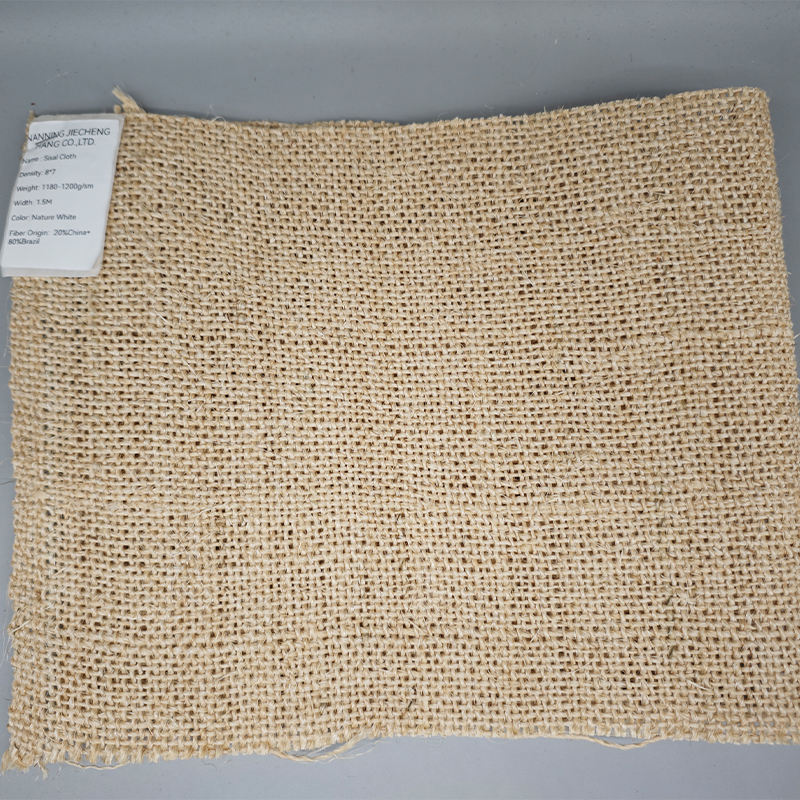 The sisal cloth is made of 100% natural sisal fiber, with strong and pliable texture, good appearance and great resistance of abrasiveness and traction, is a kind of good raw material for making buffing wheels, cat mats and is widely used as the wrapping material for various kinds of products. We provide sisal fabric to our customers in a variety of parameters, including origin of the sisal, weight per square meter, cloth thickness, and width, in order to meet their unique needs. Depending on the use, the sisal used can come from China, Brazil, or Africa.